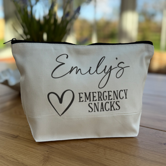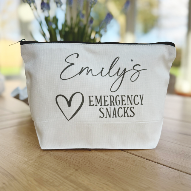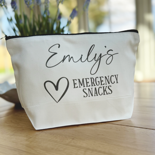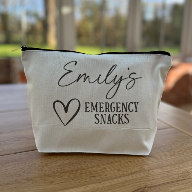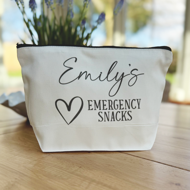 Never be caught without snacks again. Our Personalised Emergency Snack Pouch is the perfect mix of practical and fun – ideal for keeping your favourite treats close by whether you're at home, work, or on the go.