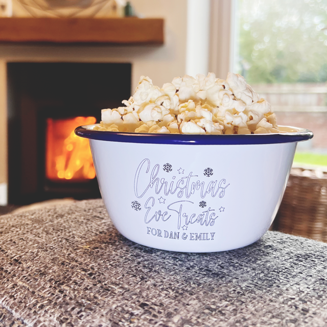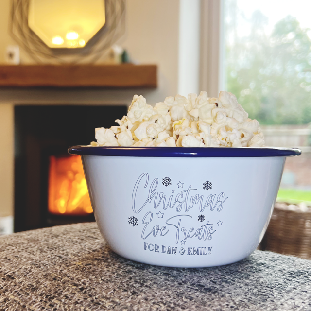 Christmas Eve Treats Personalised Enamel Snack Bowl