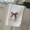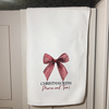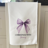 Available in 6 different bow colours, each towel is printed in one corner so it can be displayed beautifully while hanging. The name line is colour-matched to your chosen bow for a coordinated finish.