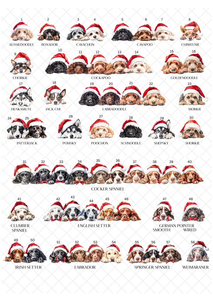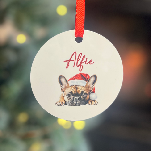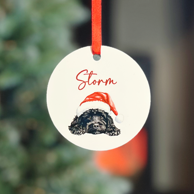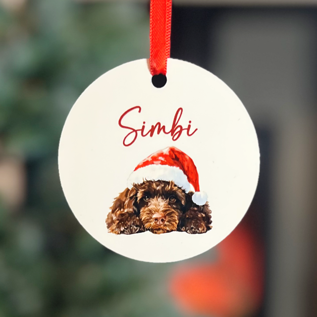 🎄 Celebrate Christmas with your furry friend front and centre! This personalised dog decoration is the perfect keepsake for pet lovers. Choose from 217 different dog breeds, each wearing a festive Santa hat, and add your pet’s name for a unique touch to your Christmas tree.