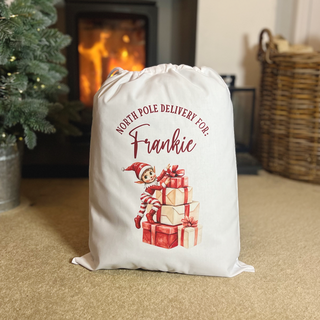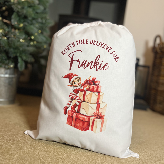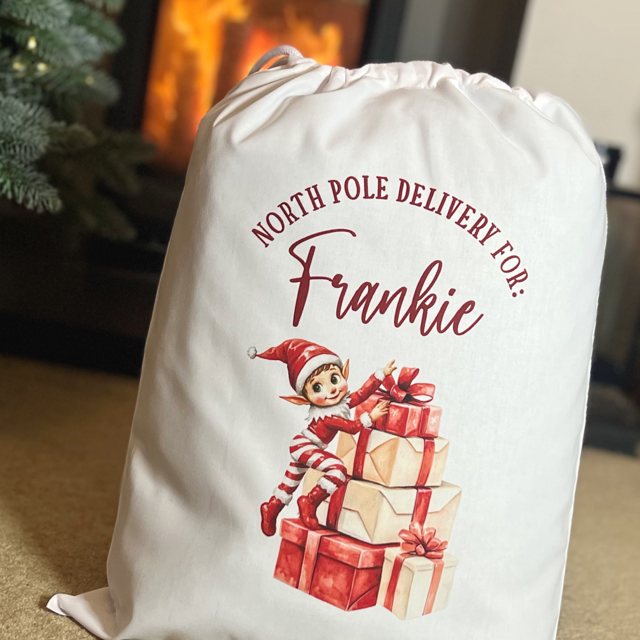 Each sack comes printed with the wording ‘North Pole Delivery For:’ followed by your chosen name (max 22 characters). A fun and festive keepsake that can be used year after year!