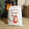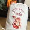 Make Christmas morning extra magical with this adorable North Pole Delivery Christmas Sack! Featuring a cheeky little elf sitting on a stack of gifts, this festive sack is perfect for storing presents straight from the North Pole.