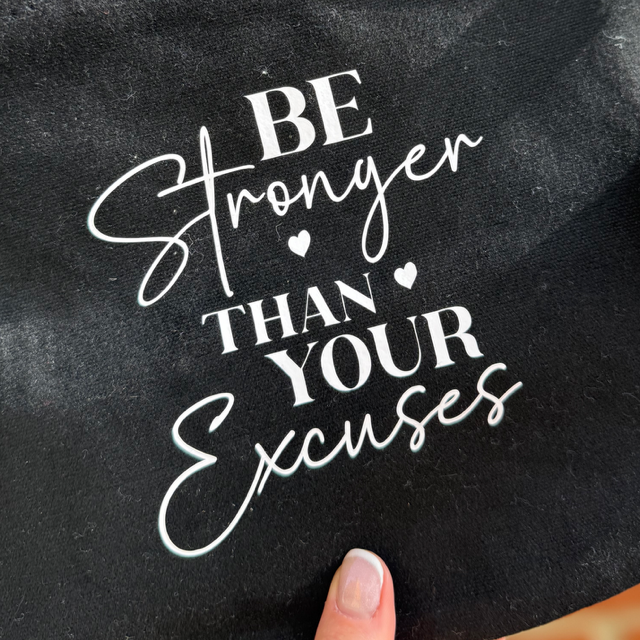 Carry your essentials with purpose using this Be Stronger Than Your Excuses Wristlet Pouch. Measuring 28 x 22cm, it provides ample space for your phone, cards, and everyday items whilst delivering an inspiring message. The pre-made design means it's ready to use straight away—no waiting required. Whether you're heading out for the day or need a compact organiser for travel, this pouch pairs practical functionality with motivational style. Ideal for anyone seeking a daily reminder to push past limitations. Final sale item. Please note: all sales are final with no returns, refunds, or exchanges accepted. The item you receive matches the photos shown.