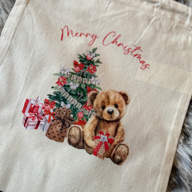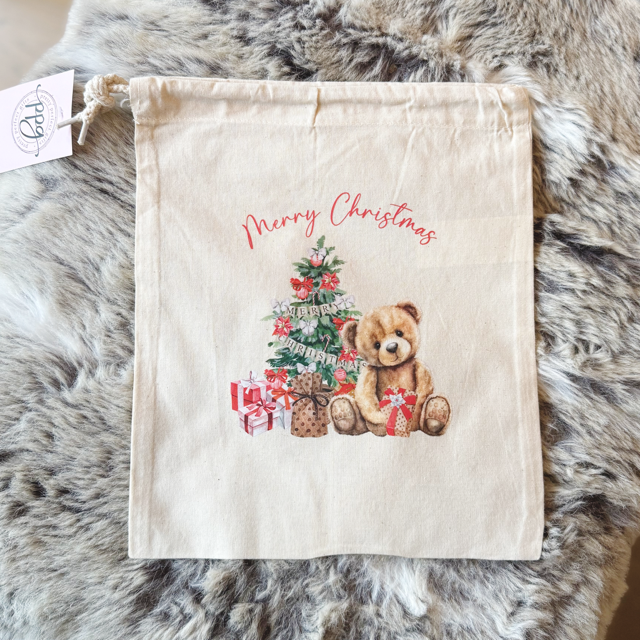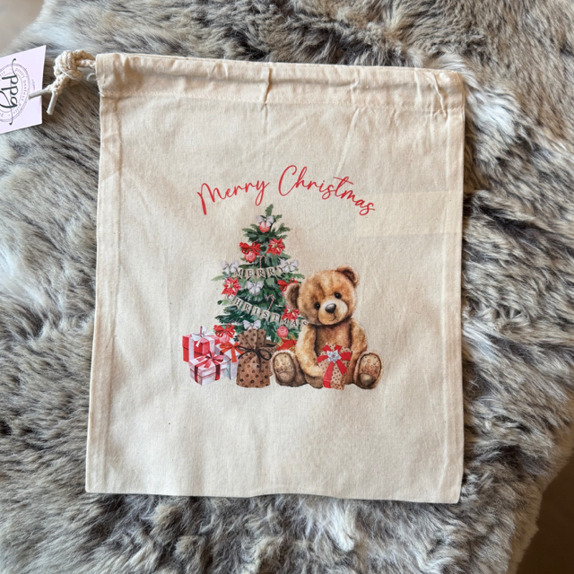 Spread festive cheer with this adorable Merry Christmas Teddy in a natural small sack. Perfect for stocking fillers, party favours, or last-minute gifts, this charming plush companion brings warmth and joy to any celebration.