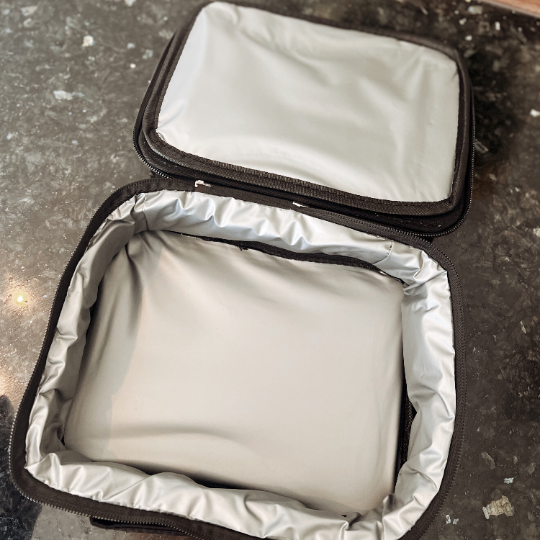 Size - 24cm x 18cm x 7cm (approx.). Colour - Black. Insulated lunch cooler bag