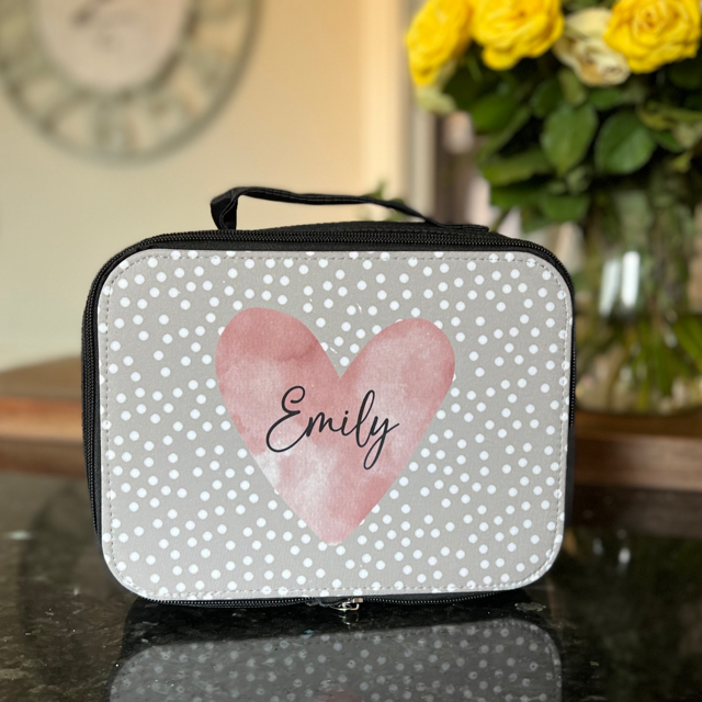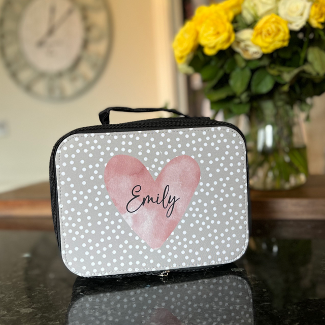 Make lunchtime more fun with Grey & Pink Heart Name Lunch Bags! Boldly printed with heart and your name, these bags make lunchtime their favourite part of the day. Durable and easy to carry, they'll be sure to make every lunch break special.