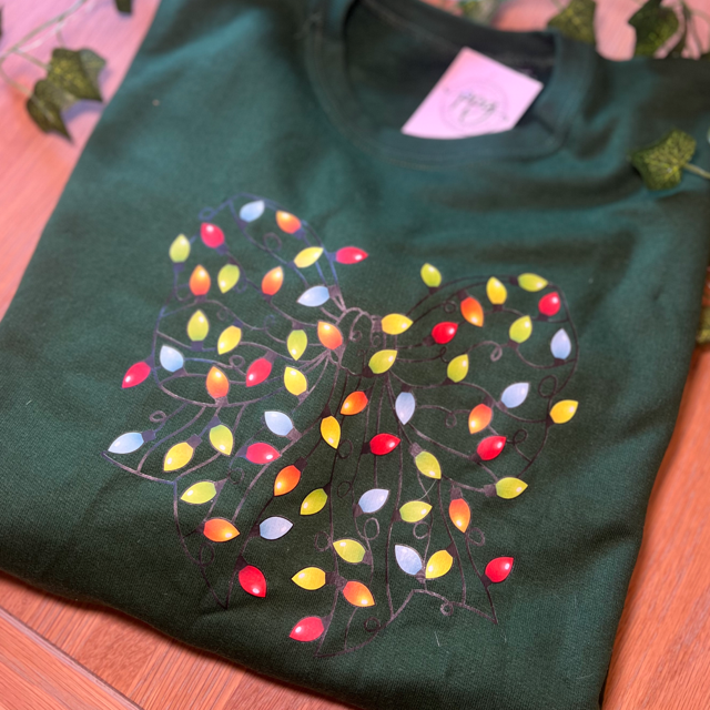 Elevate your holiday style with our Light Christmas Bow Sweatshirt! This festive and fashionable sweatshirt features a charming bow design that adds a touch of cheer to any outfit. Stay cosy and stylish all season long with this must-have piece.