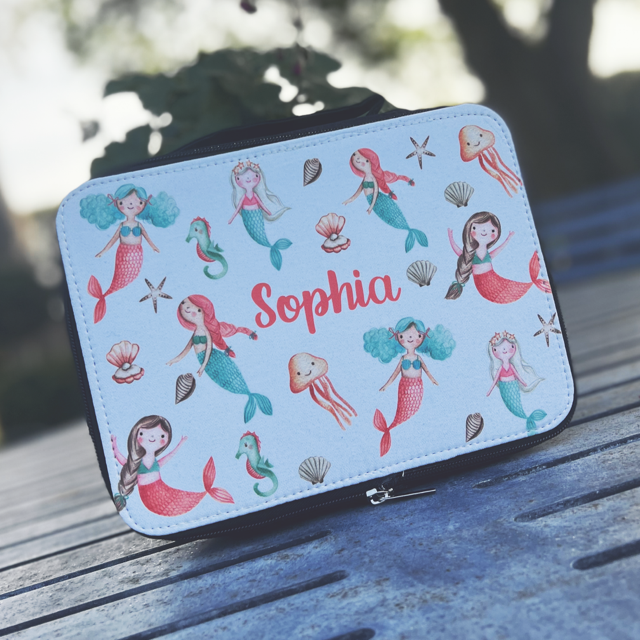 This personalized Mermaid Lunch Bag is the perfect accessory for school or work! It features beautiful artwork that any mermaid-lover will adore, and its personalized name makes it as unique as your mermaid-obsessed child.