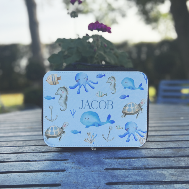 Bring the magic of the ocean with you wherever you go with our Under The Sea Personalised Lunch Bag! Personalise it to make it your own with the name of your choice. This bag is perfect for taking your snacks on the go and is sure to make your lunch break feel special. Feel the ocean waves and explore the depths of the deep blue sea!