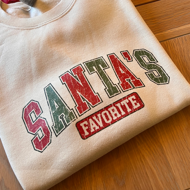 Embrace the festive spirit with Santa's Favourite Sweatshirt! This cozy sweatshirt features a festive design and is made with soft and durable fabric for all-day comfort. Perfect for spreading holiday cheer and keeping you warm during cold winter days. Get yours now and make Santa proud!