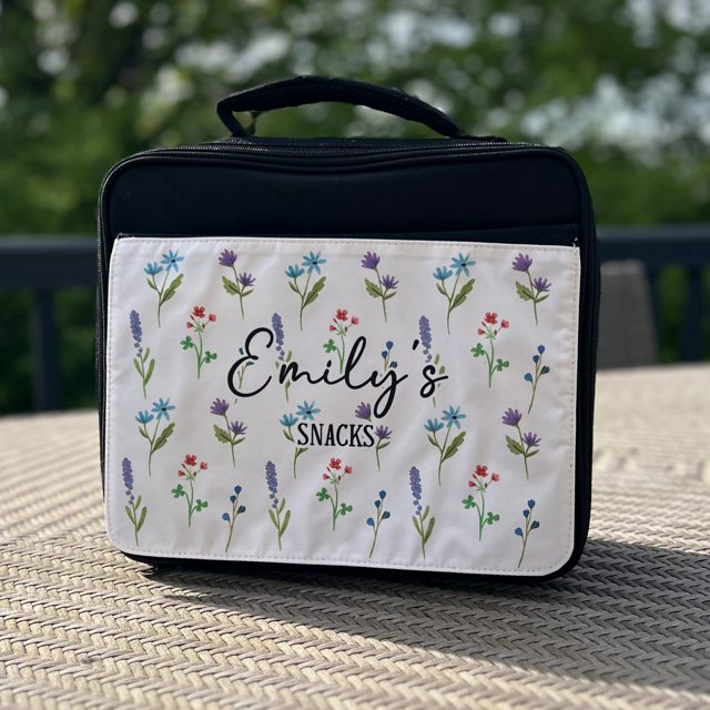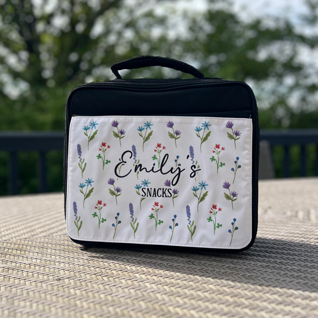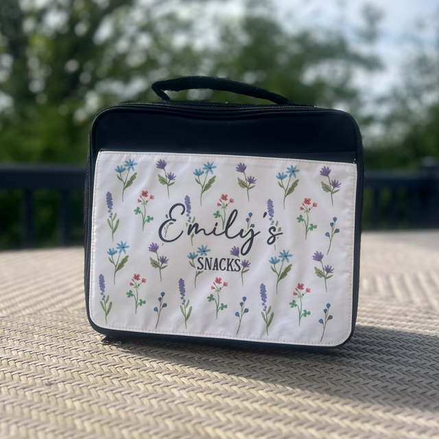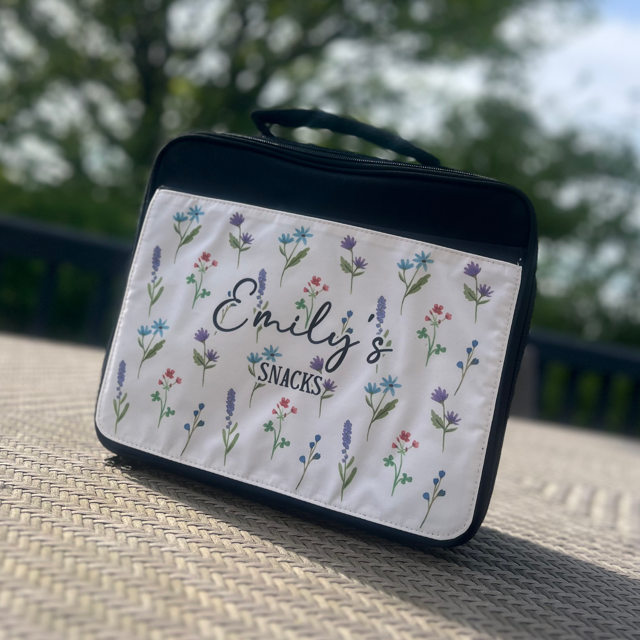 Elevate your lunch game with the Wildflower Personalised Lunch Bag! Featuring a beautiful wildflower design and customizable personalization, this bag is not only stylish but also practical. Keep your lunch together & organized while making a statement. Perfect for school, work, or a day out, this bag is a must-have for any on-the-go lifestyle.