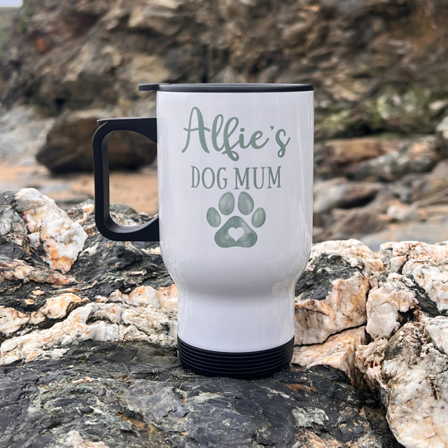 Dog Mum Coloured Paw Personalised Travel Mug