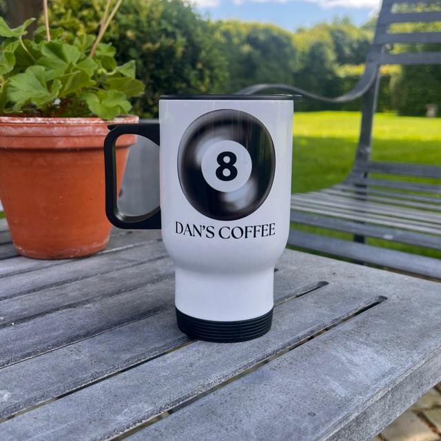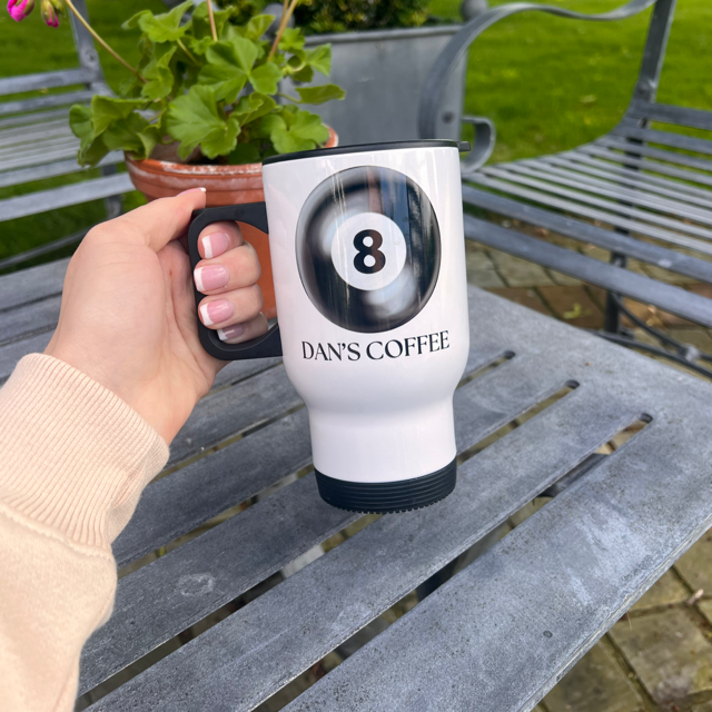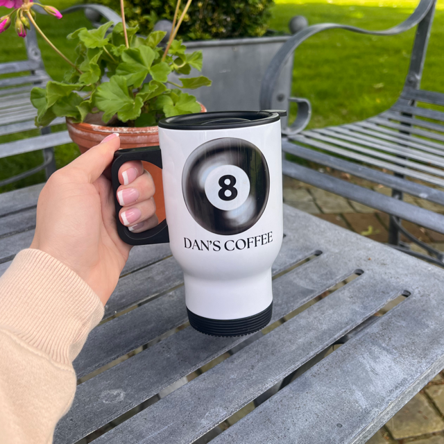 Experience the ultimate in personalization with our 8 Ball Personalised Travel Mug! Take your favourite drink on the go and show off your unique style. This sleek travel mug is perfect for any adventure.