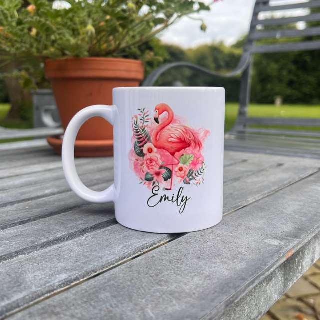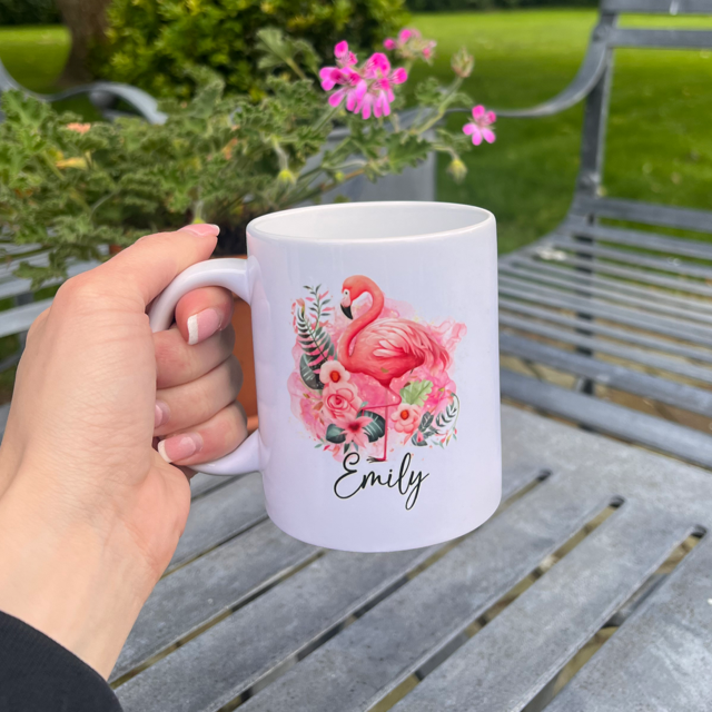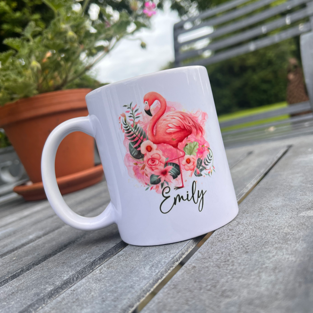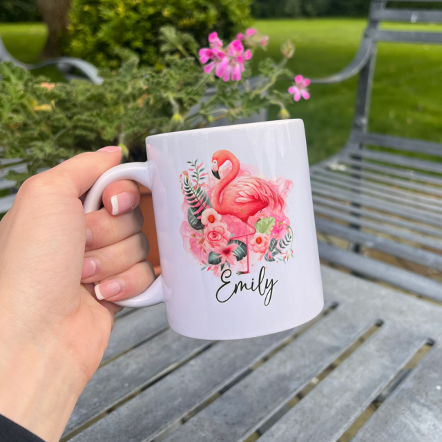 Stand out from the flock with our Flamingo Tropical Personalised Mug! Perfect for sipping your favourite beverage while dreaming of warm, sunny beaches. Our high-quality mug features a personalized flamingo design, making it a unique and thoughtful gift for yourself or a loved one. Add a touch of tropical paradise to your daily routine with our mug today!