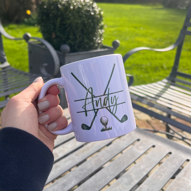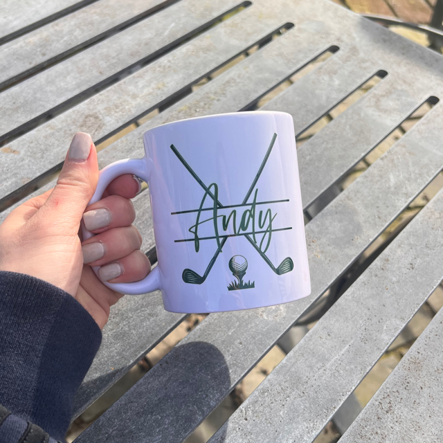 Get ready to tee off with our Golf Personalised Mug! This unique mug is perfect for any golf enthusiast in your life. With there personalised name, every sip will remind them of their love for the sport. Make a hole-in-one gift with this one-of-a-kind mug!