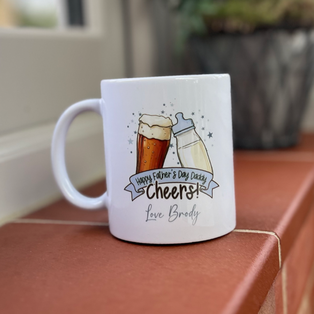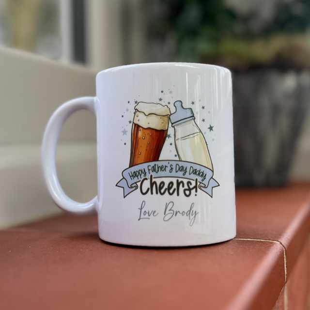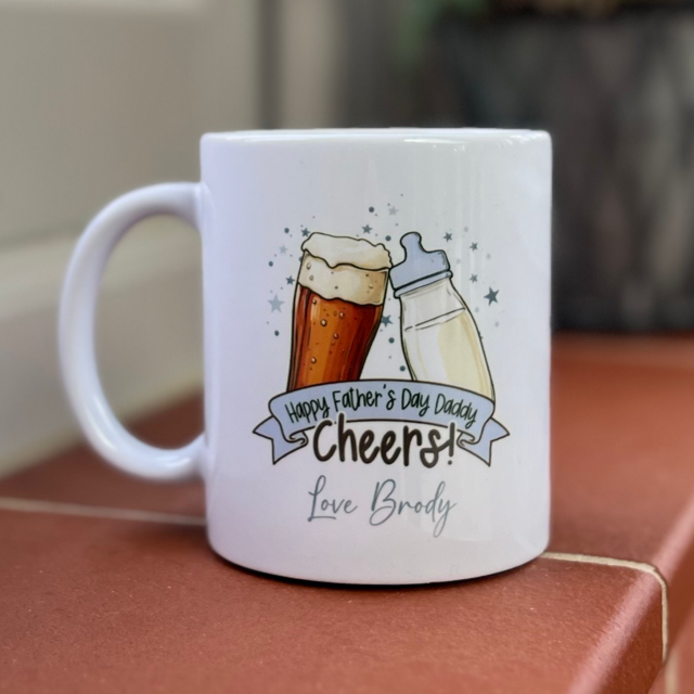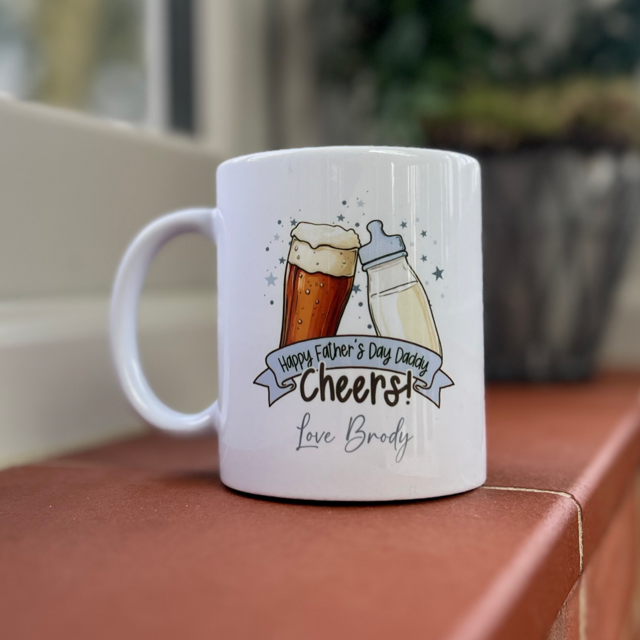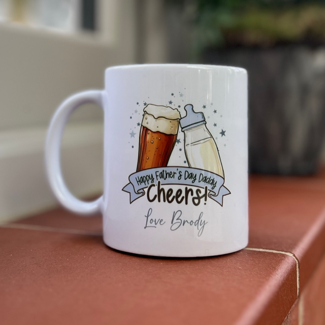 Honor the special dad in your life with our Happy Fathers Day Daddy Cheers! Personalised Mug. Perfect for celebrating fatherhood, this mug can be customized with a personal message to make it truly one-of-a-kind. Show your love and appreciation with this unique and thoughtful gift. Cheers to dads everywhere!