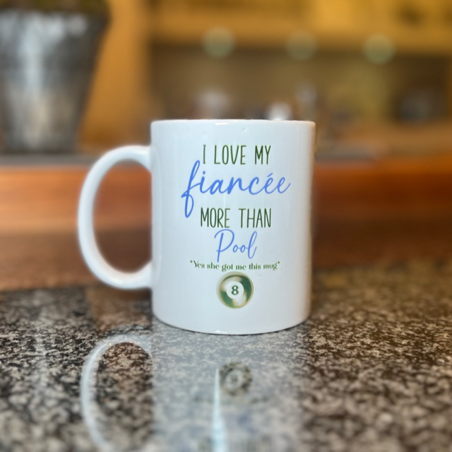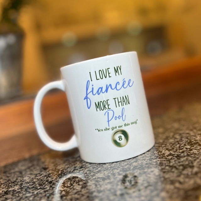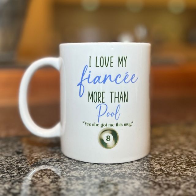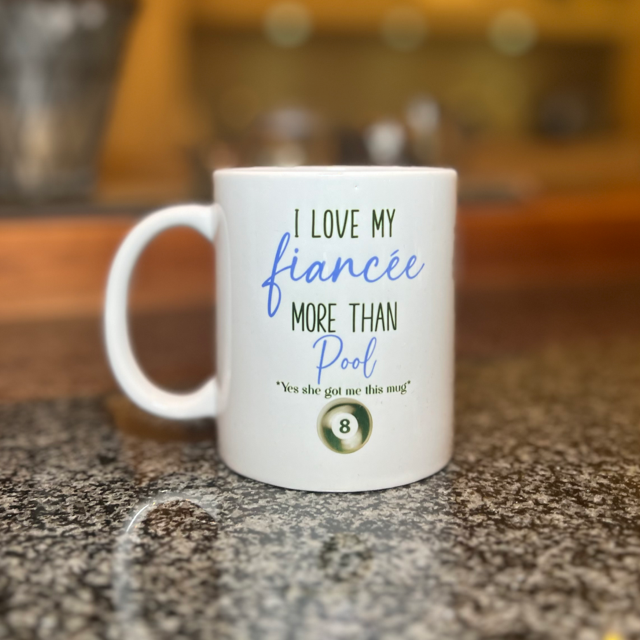 Declare your love for your fiancée with this fun and quirky mug! Featuring the words "I Love My Fiancée More Than Pool", this mug is a perfect gift for any pool enthusiast. Show your dedication and affection while enjoying your morning coffee or tea.