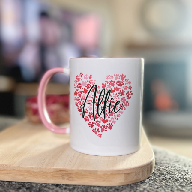 Show your love for your furry friend with our Paw Heart Personalised Mug! Made with high-quality materials, this mug can be customized with your pet's name for a truly unique touch. Perfect for any pet lover and a great addition to your morning routine. Order now and start your day with a smile!