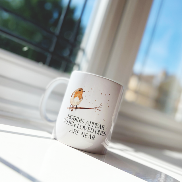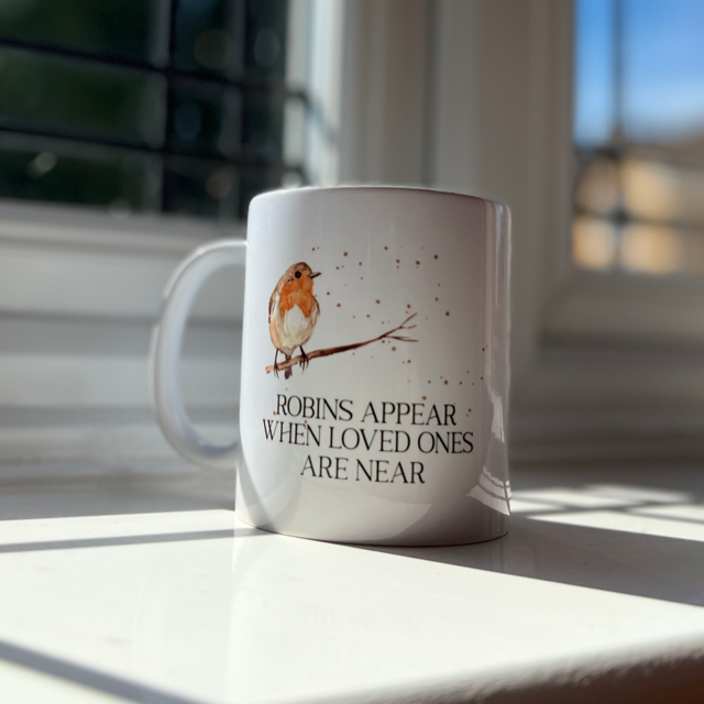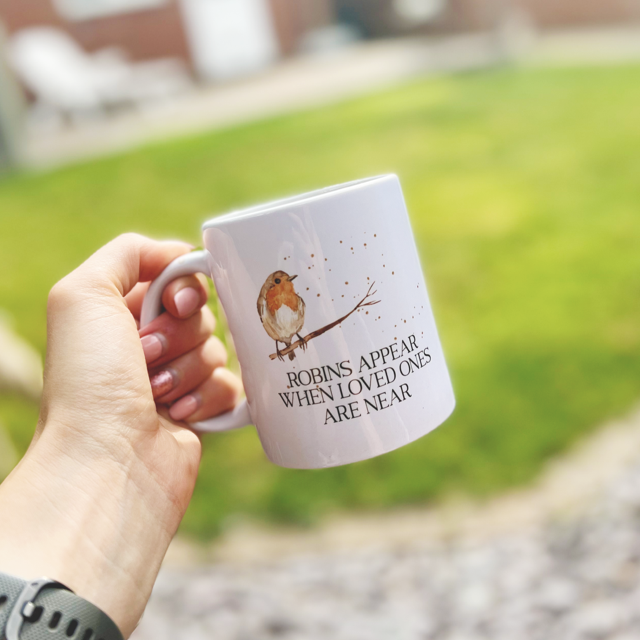 Feel comforted by the reminder that your loved ones are always with you with this beautiful Robins Appear When Loved Ones Are Near Mug! This mug is the perfect way to honour your special bond and share a cup of coffee with the people you care about most.
