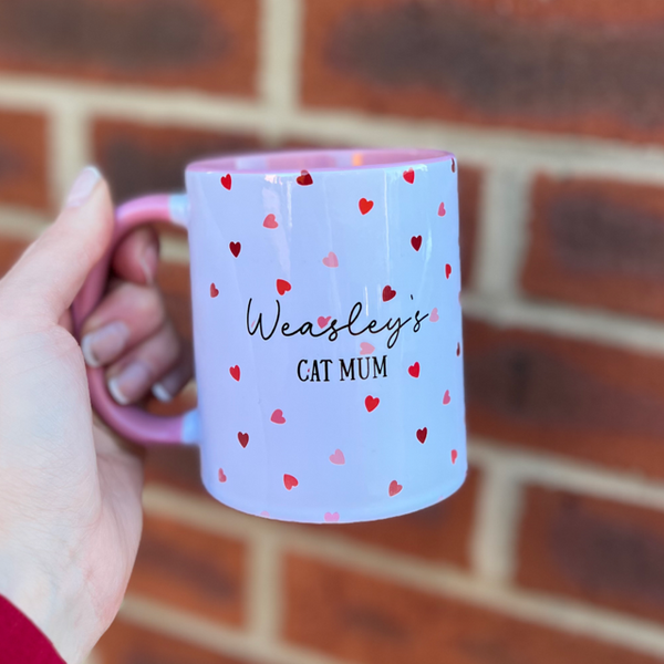 Pink & Red Hearts Personalised Cat Mum Mug