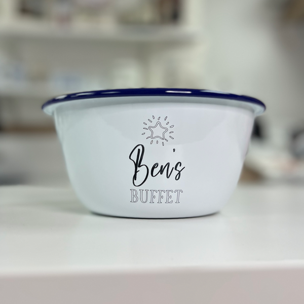 Enamel Bowls Custom Text with Star Personalised Engraved Enamel Bowl- Oospy Ben's Buffet £12.95 £27.95