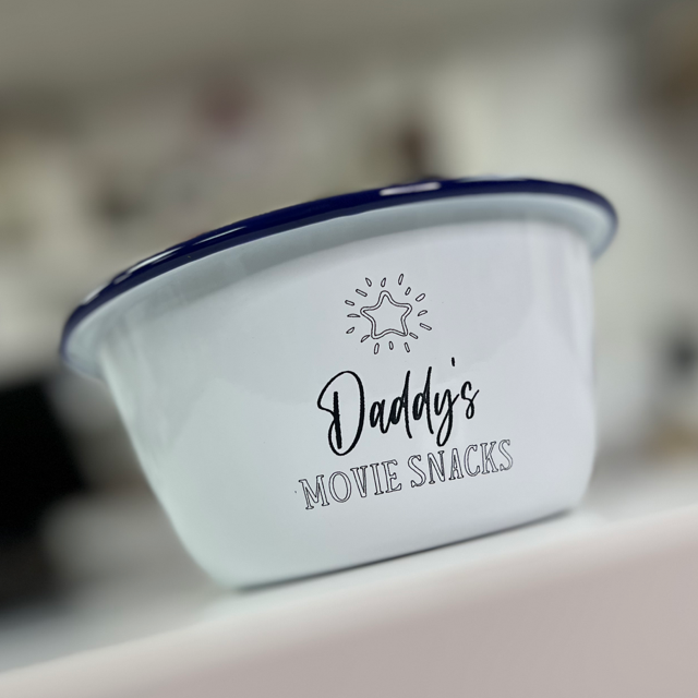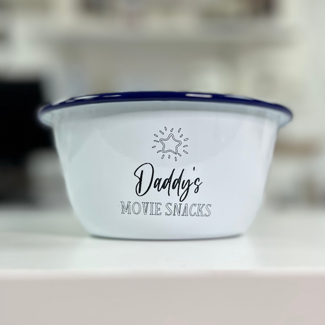 - Engraved enamel movie snack bowl