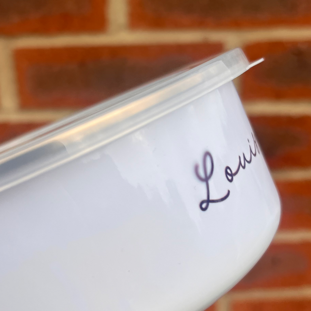 Bowls are as per photos - One bowl - Louise with navy bowl - The L is blurry on this item