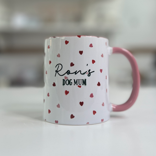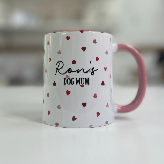 Pink & Red Hearts Personalised Dog Mum Mug - Oopsy Ron's