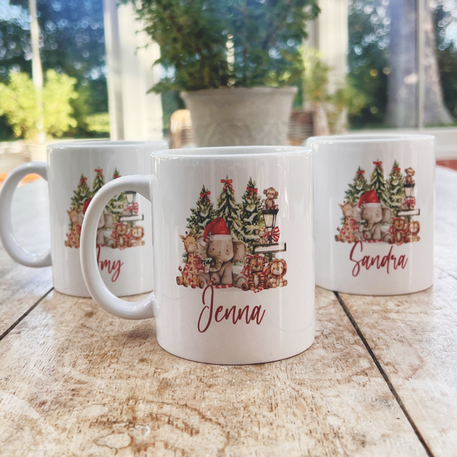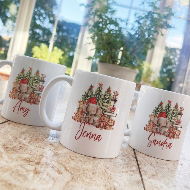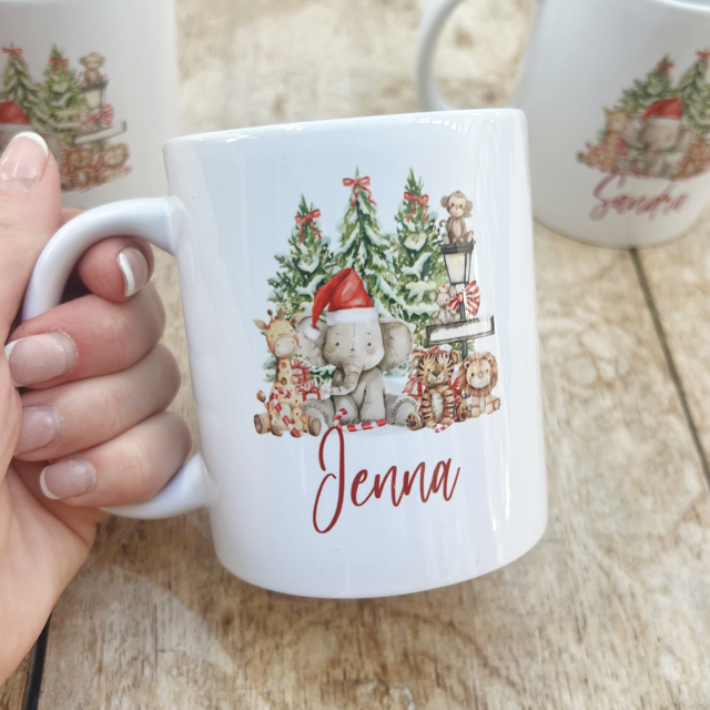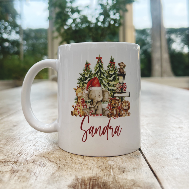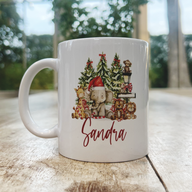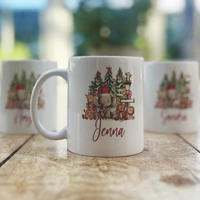 Add some festive charm to your morning cuppa with our Safari Christmas Mug. Featuring safari animals surrounded by Christmas trees it’s the perfect choice for hot chocolate, tea, or coffee this season.