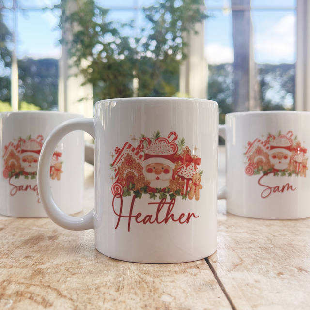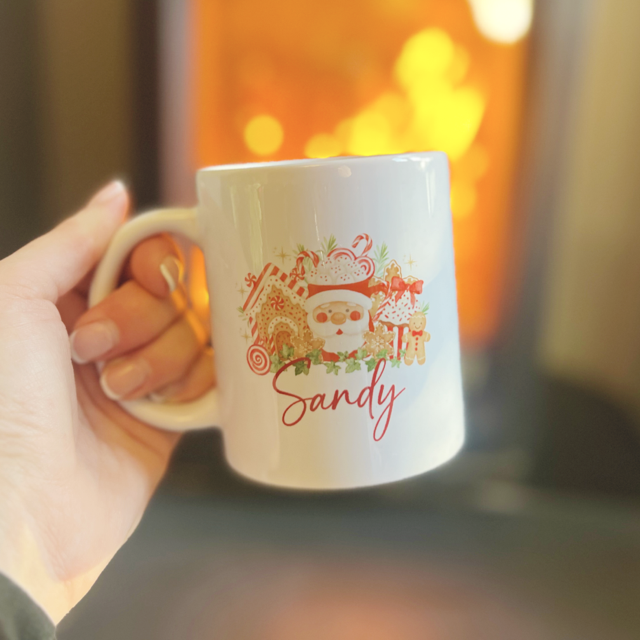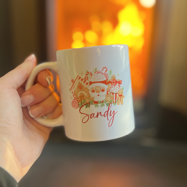 Add a touch of festive magic to your morning brew with our Santas Bakery Personalised Mug. Each mug features a cheerful Santa surrounded by candy canes, gingerbread houses, and festive sweets — perfect for cosy hot chocolates, coffees, and Christmas movie nights.