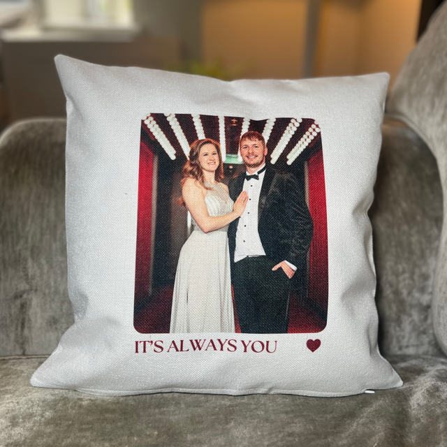 Capture your most cherished memories with our Landscape Photo Personalised With Heart Cushion Cover. Add your favourite photograph to create a unique and meaningful home décor piece. Soft and durable, this cushion cover will make a beautiful addition to any room. Cherish your memories every day with this personalized cushion cover.