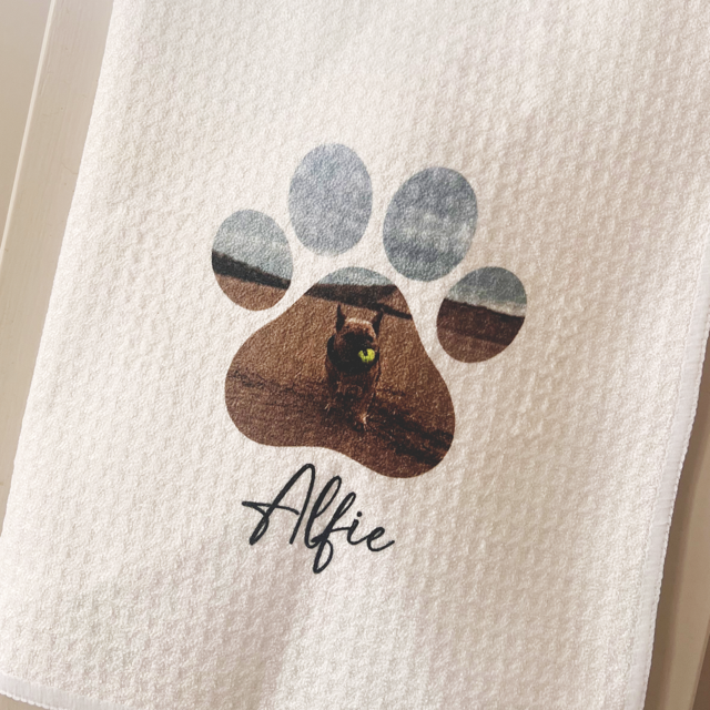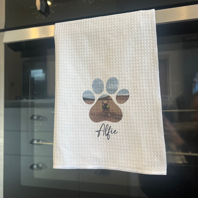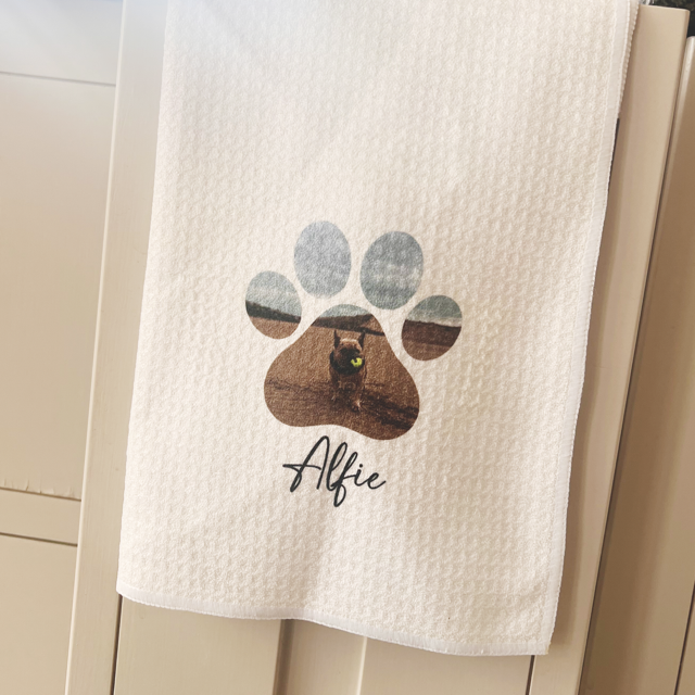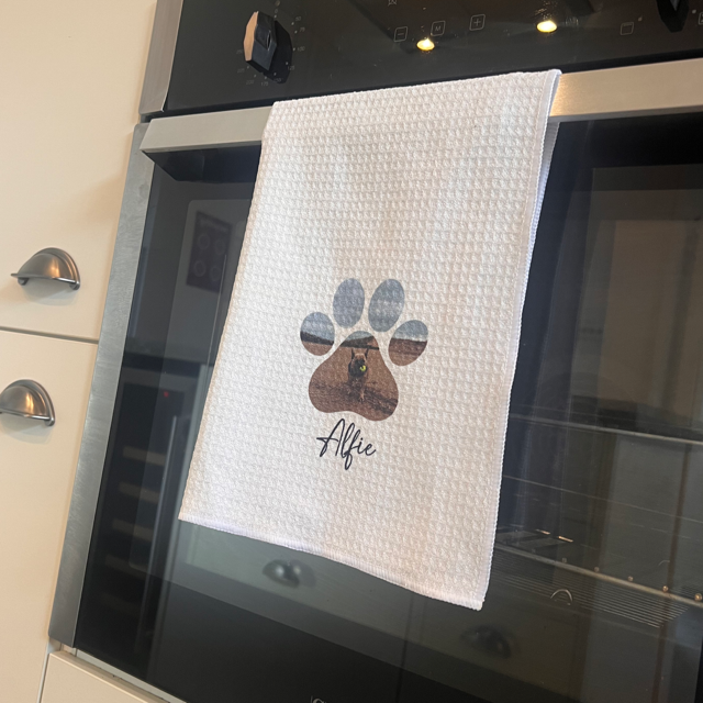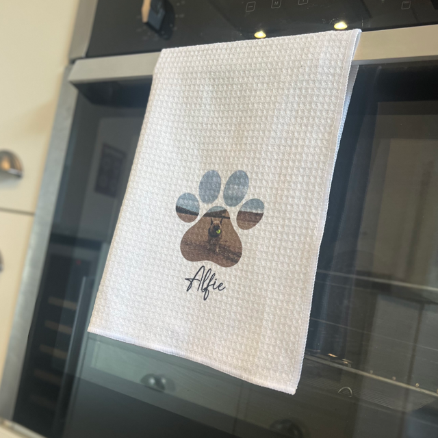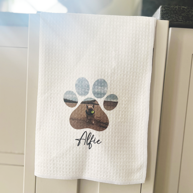 Add a personal touch to your kitchen with our Paw Photo Personalised Tea Towel! Made with high-quality material, this tea towel features your own unique photo in a paw, making it a perfect gift for any pet lover. Show off your furry friend in style with this customisable and practical tea towel.