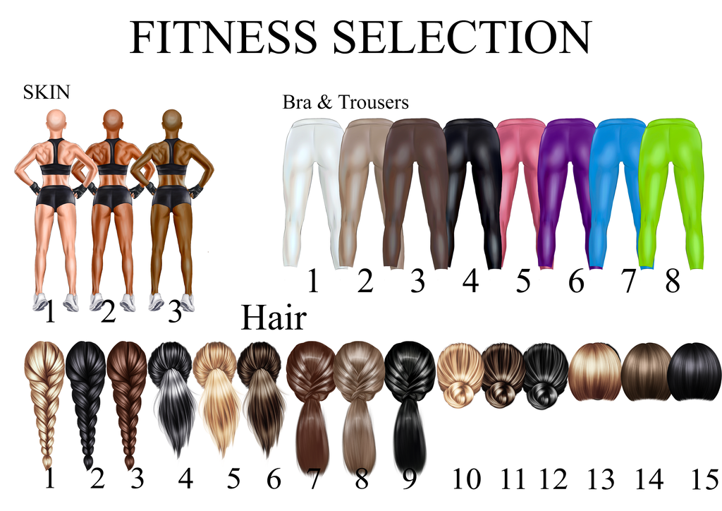 PERSONALISED INFO: MAX 16 Spaces. Wights bar as standard. Please leave Skin Colour, Bra & Trouser colour and Hair selection in personalised box.