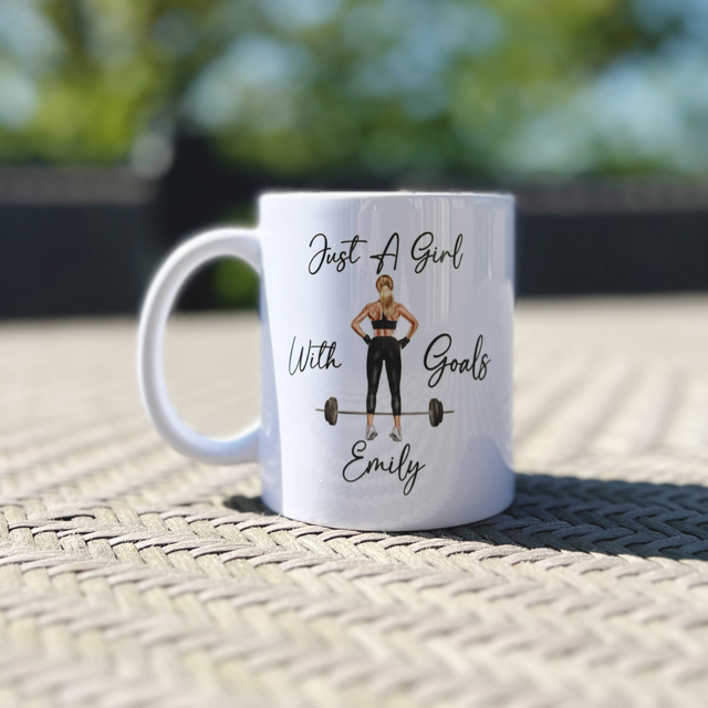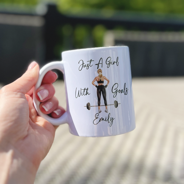 Boost your motivation and show off your aspirations with the Just A Girl With Goals Personalised Mug. With its unique personalization and inspiring message, this mug is the perfect companion for your daily grind. Start your day off right and stay focused on your goals with every sip!