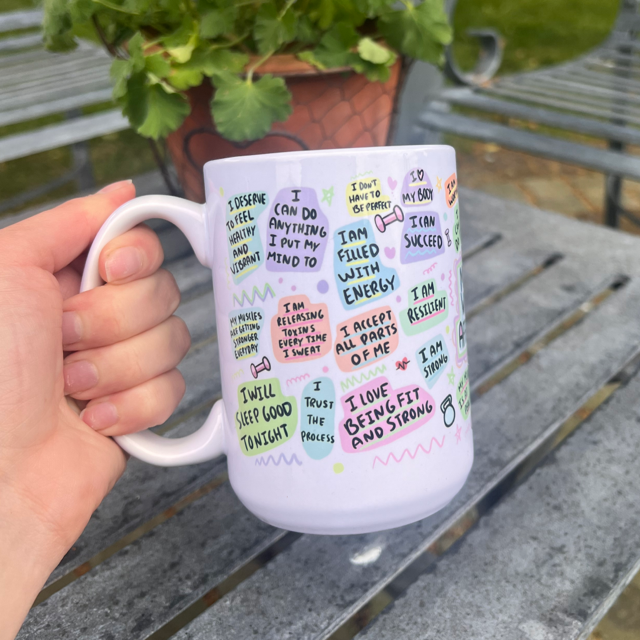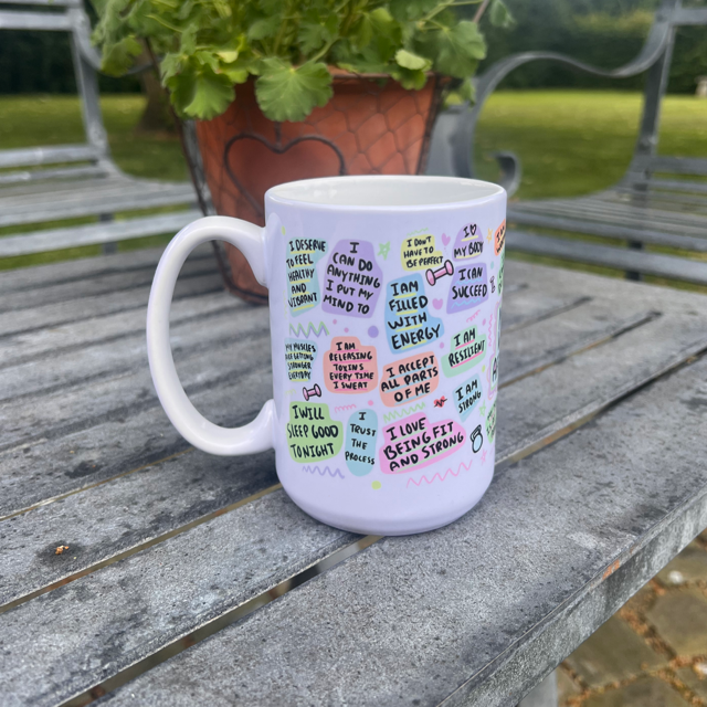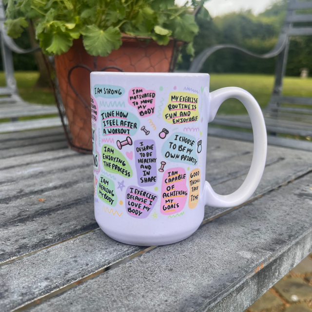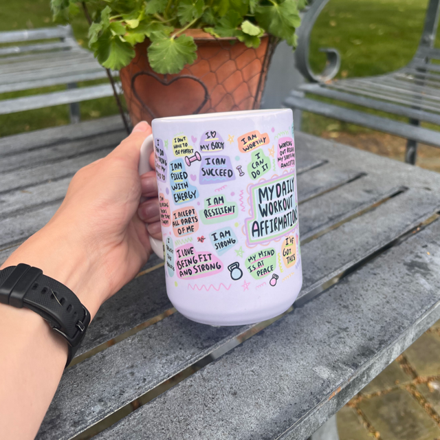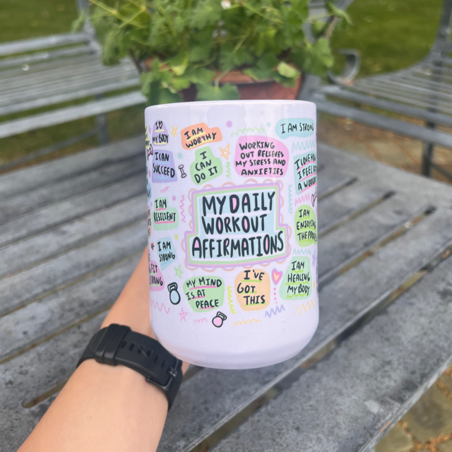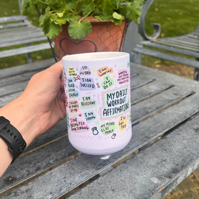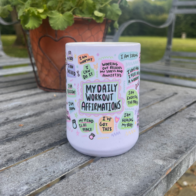 Start each day off with positivity and motivation with the My Daily Workout Affirmations Mug! This mug features encouraging affirmations to keep you focused and energised to power through your workouts. Enjoy your morning coffee reaffirming you are strong, capable, and determined!