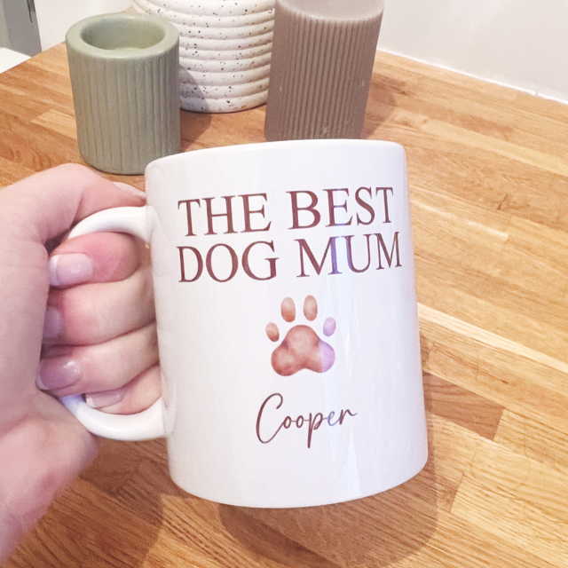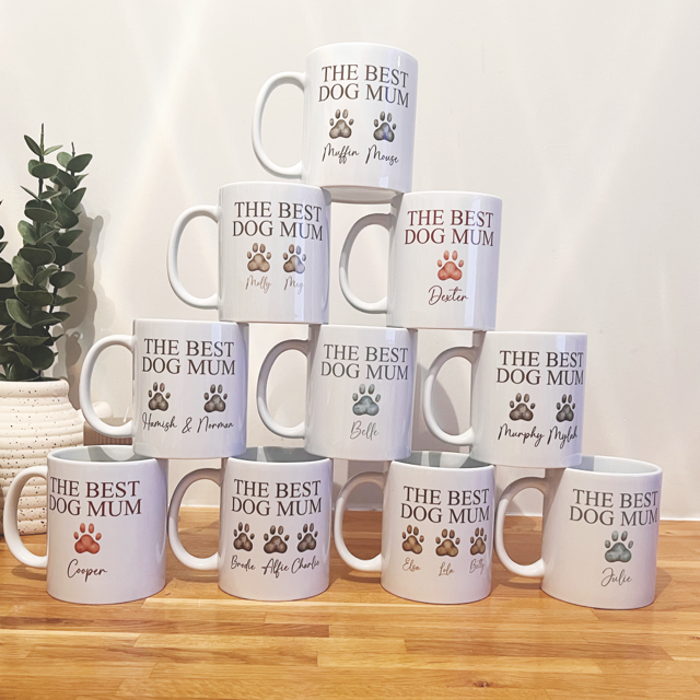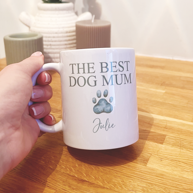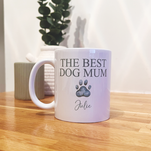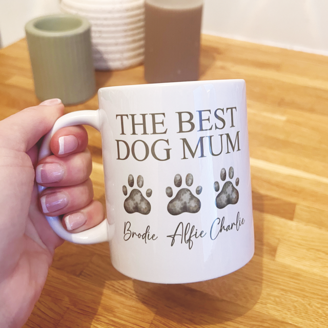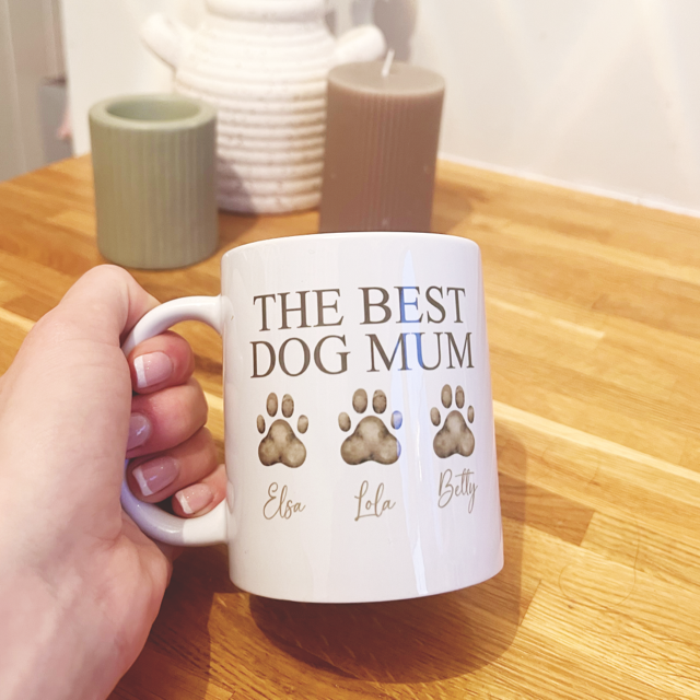 PERSONALISED INFO: The best dog mum is standard. Up to 4 Paws Max Spaces per name: 16. These will all be printed in the paw colour selected. Please note you are selecting the paw colour not the amount of paws.