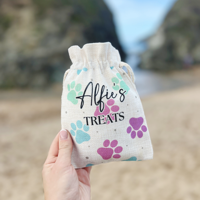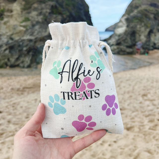 Indulge your beloved furry friend with our Pastel Paws Personalised Pet Treat Bag. Perfectly to carry their favourite treats, it's a must-have for pet owners. The adorable pastel paw design and customisable name will make it a cherished and practical addition to your pet's daily routine. Pamper your pet with this delightful accessory!
