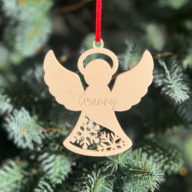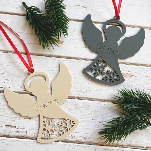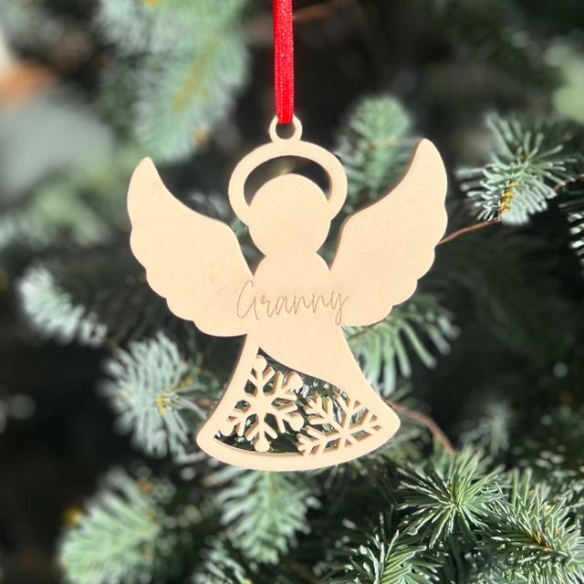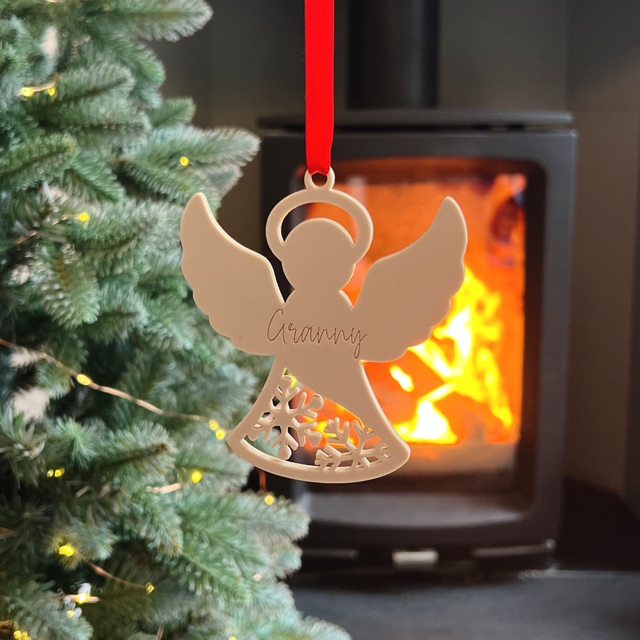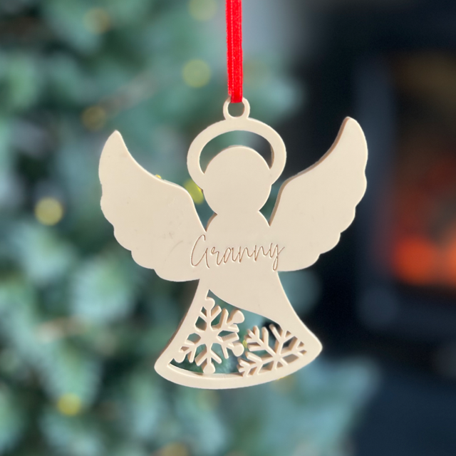 Add a heartfelt touch to your Christmas tree with our angel Christmas decoration, available in a range of festive colours. Each angel ornament can be personalised with your chosen name or word, making it a special keepsake to treasure year after year.