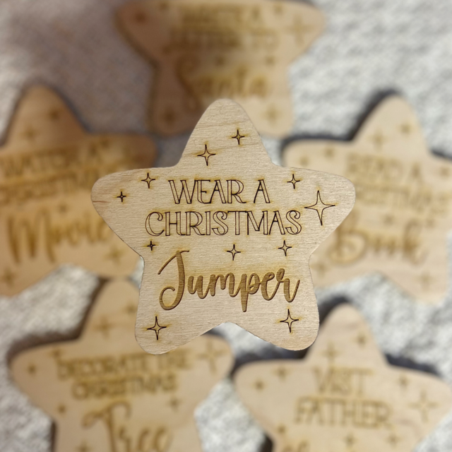 Make the countdown to Christmas extra magical with this set of six engraved wooden stars, each featuring a fun festive activity for the whole family. Perfect for adding to advent calendars, Christmas Eve boxes, or holiday traditions.
