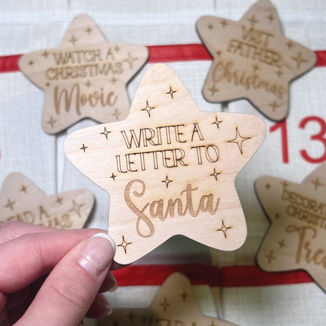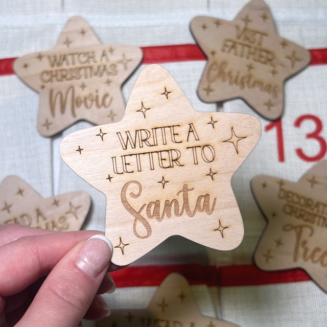 Christmas Activity Star Set, Wooden Advent Calendar Tokens
