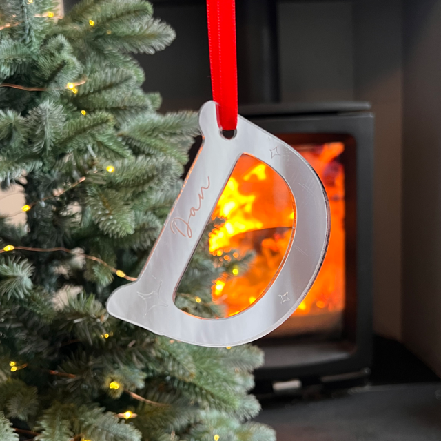 🎄 Make your Christmas extra personal with these stunning mirror acrylic initial decorations. Each letter is engraved with a name and finished with star details for a touch of festive sparkle.