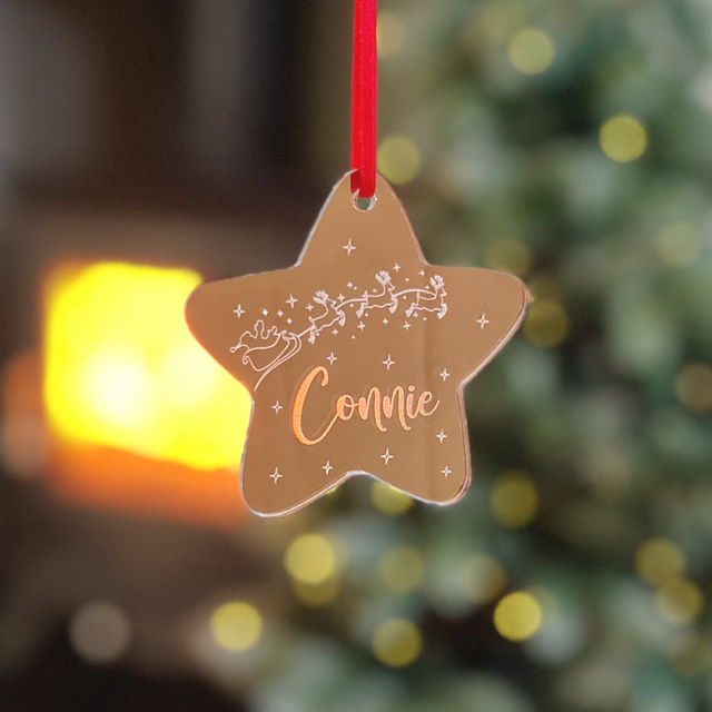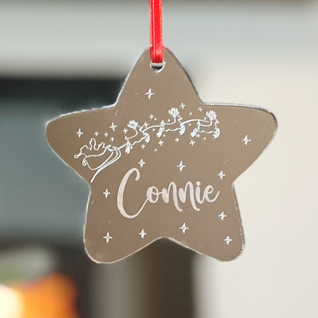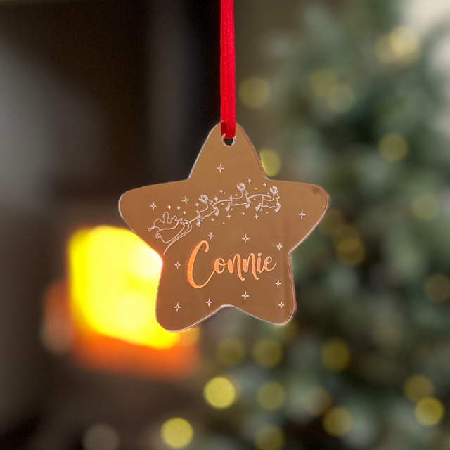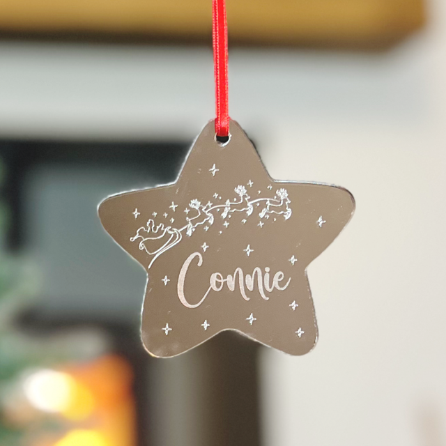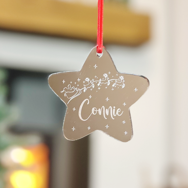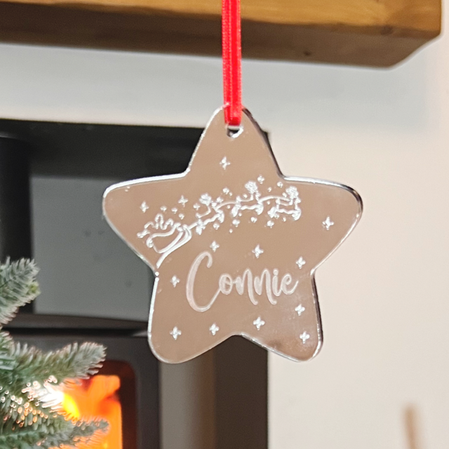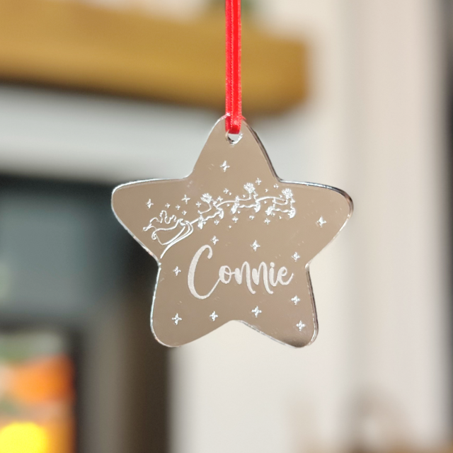 Santa’s sleigh Personalised Engraved Star Christmas Decoration