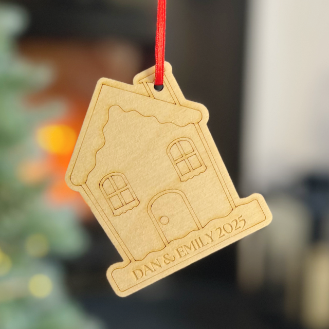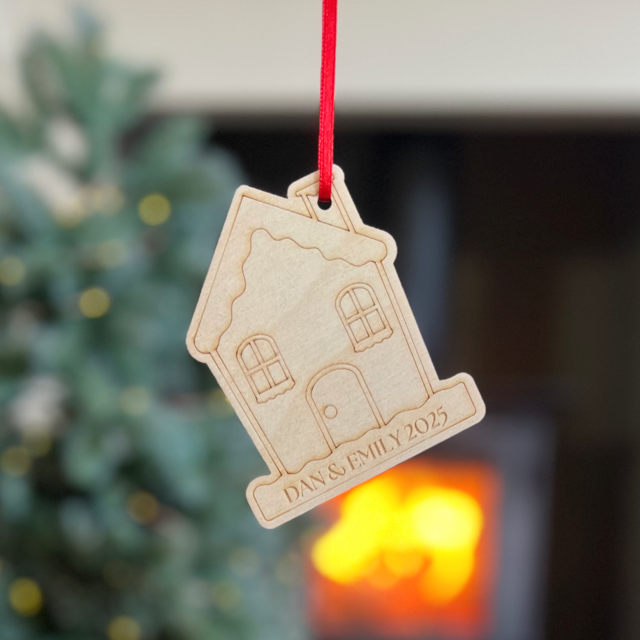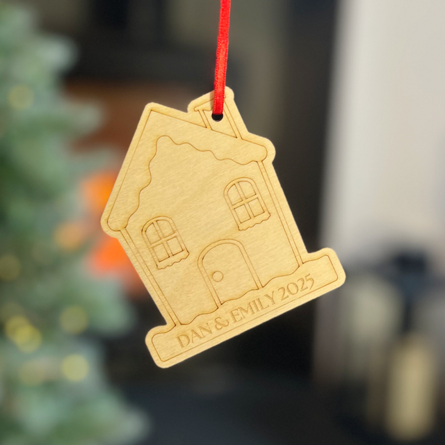 Celebrate special memories with this engraved Wooden House Christmas Decoration. A lovely addition to your festive tree or a thoughtful gift for family and friends.