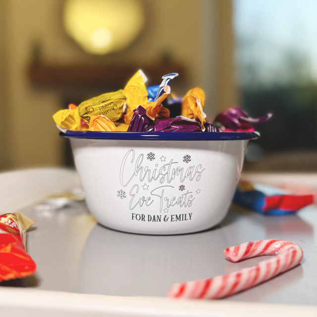 Christmas Eve Treats Personalised Enamel Snack Bowl