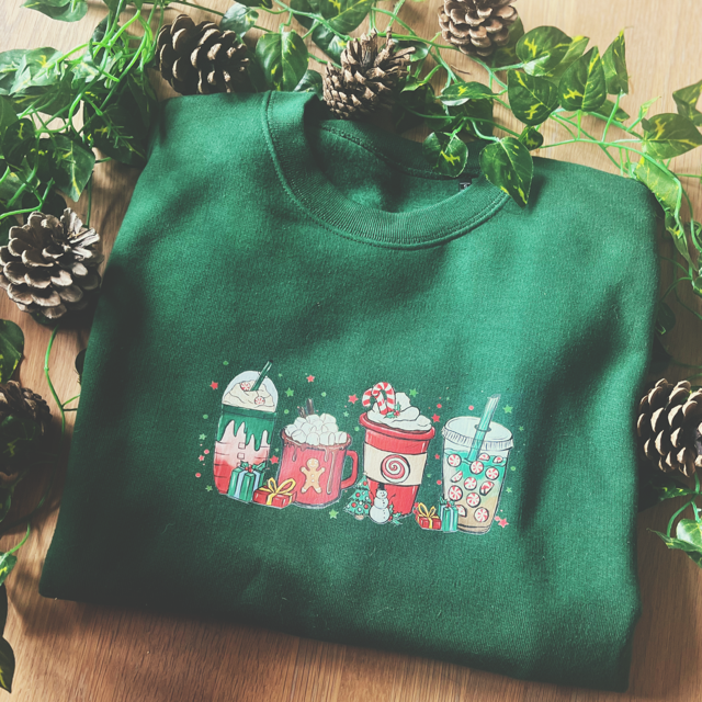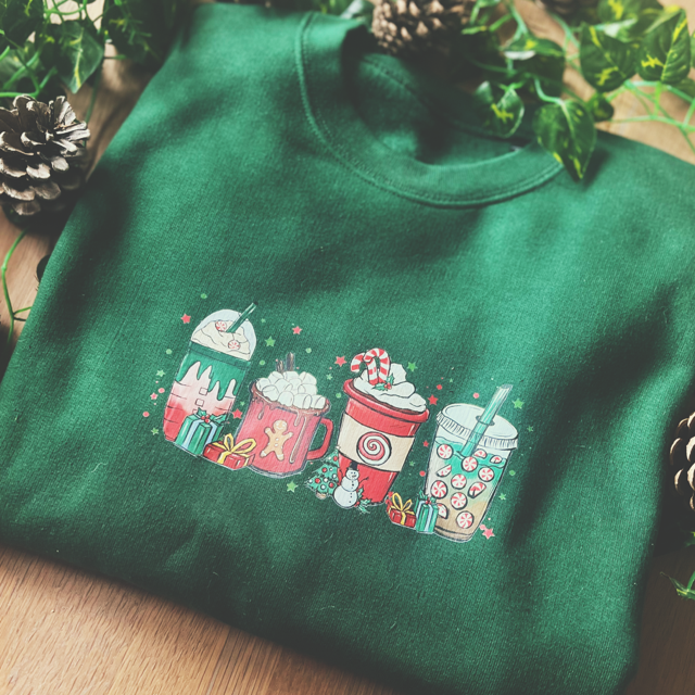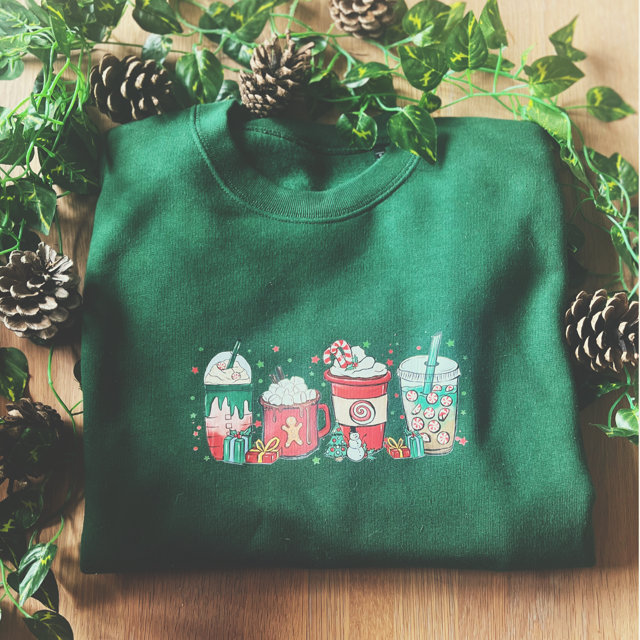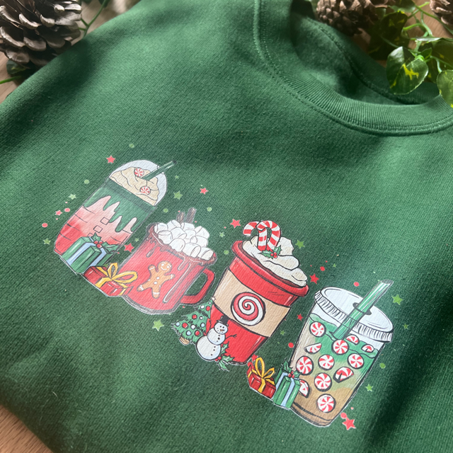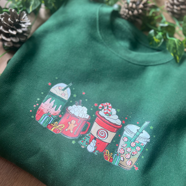 Whether you're enjoying a cozy winter day or snuggling up for a movie night, this Festive Latte & Hot Chocolate Sweatshirt is the perfect way to stay warm and festive. Made of soft and comfortable material, this stylish sweatshirt will keep you feeling cozy all season long!