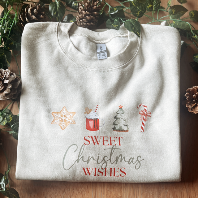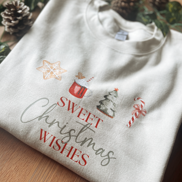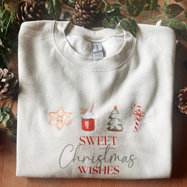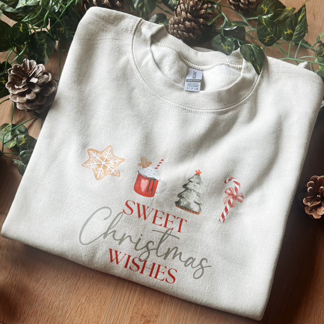 Celebrate the holidays with this stylish Sweet Christmas Wishes Sweater! Its cheerful design and cosy fit will bring warmth and joy to any winter gathering. Get ready to spread some festive cheer!