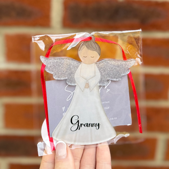 Angel Granny Silver Wings Bauble clear front - End Of Season Sale