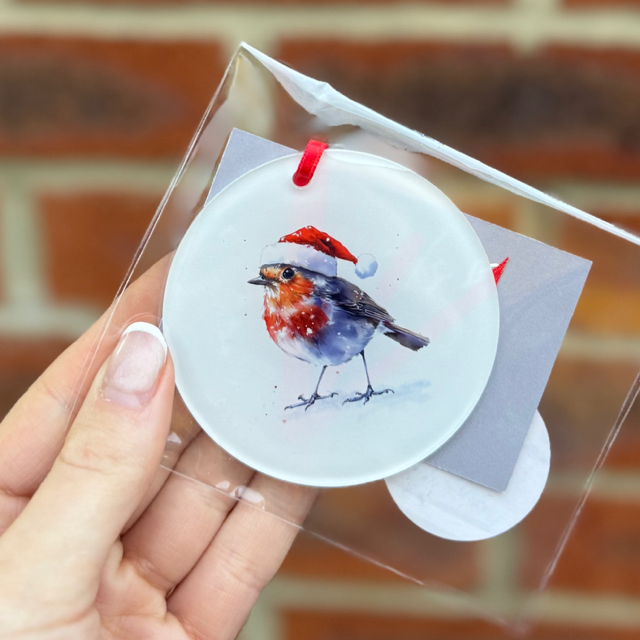 Capture the festive spirit with this charming Christmas Robin acrylic decoration. Perfect for adding a touch of seasonal cheer to your tree, mantelpiece, or window display. Its vibrant design brings traditional holiday warmth to any space.
