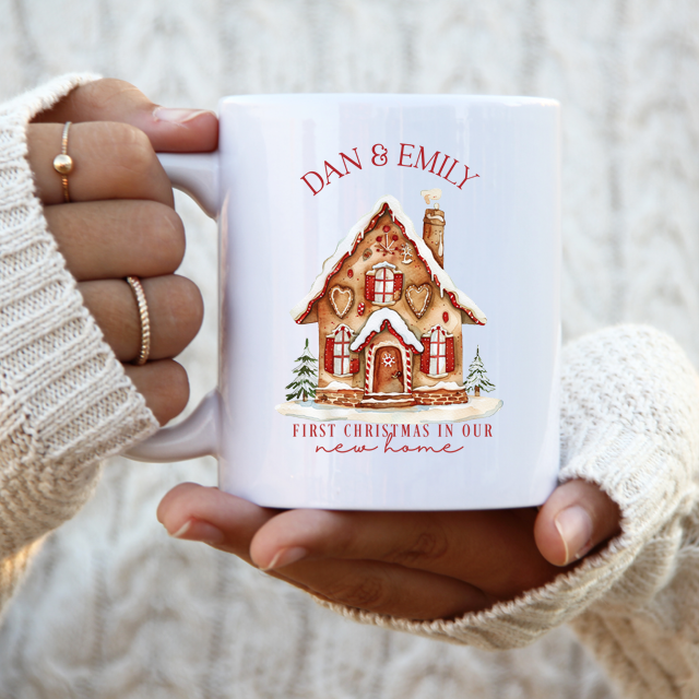 Celebrate your first Christmas in your new home with this personalised mug! Featuring a festive design and your chosen names, this mug is perfect for sipping hot cocoa by the fireplace. Make your new home feel even more special with this unique and thoughtful gift.