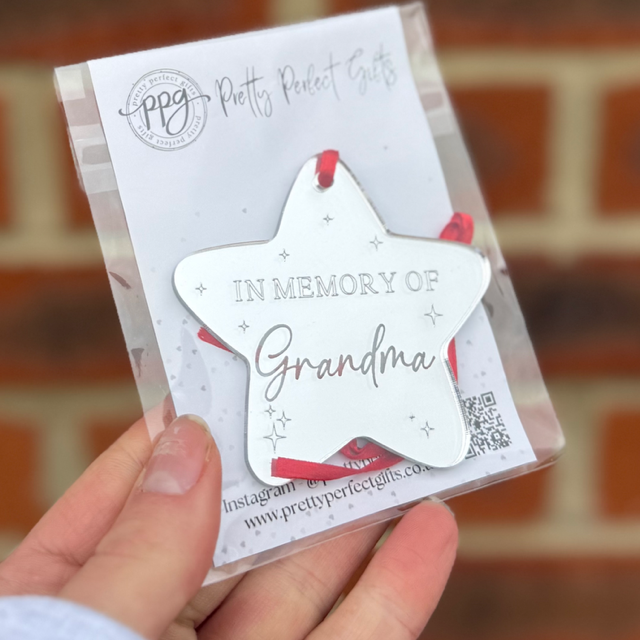 A thoughtful way to remember someone special, each star is beautifully engraved with In Memory Of Grandma.